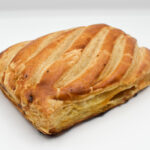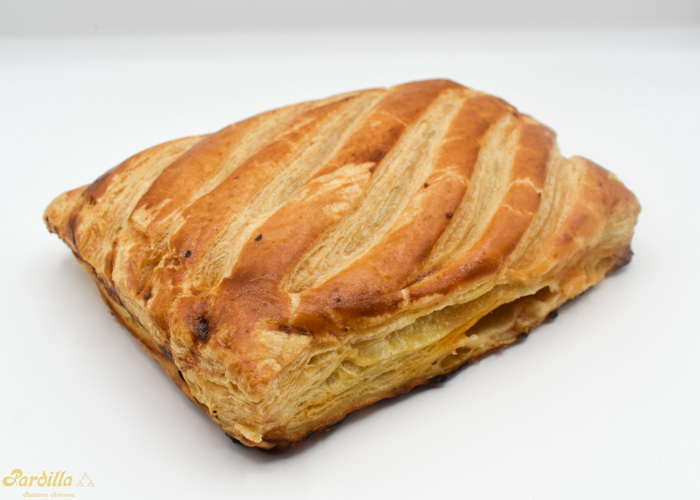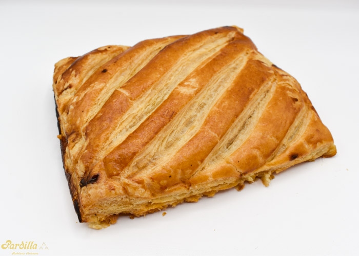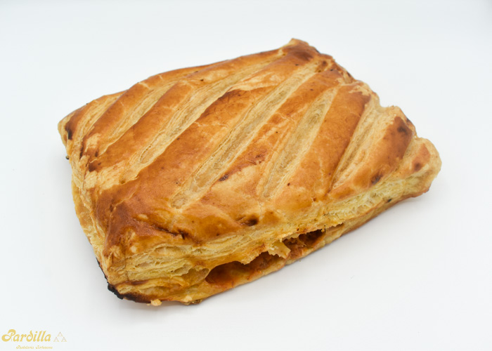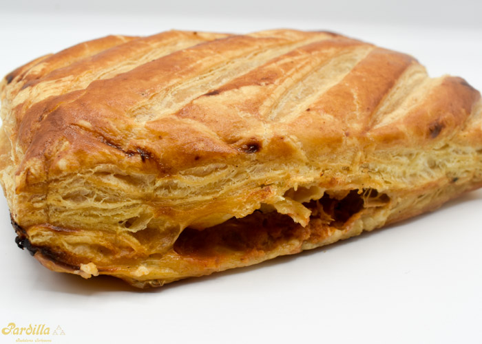 Hojaldre a base de harina,aceite,azúcar,huevos y margarina integrado con nuestra mezcla de atún natural y pisto artesano.